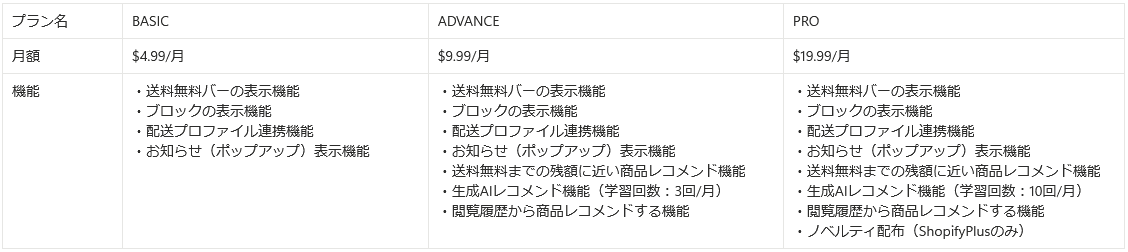◦ ノベルティ配布(ShopifyPlusのみ) ◦ NEW: 生成AIレコメンド機能(学習回数:10回/月)
